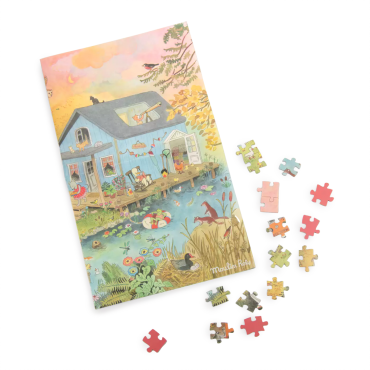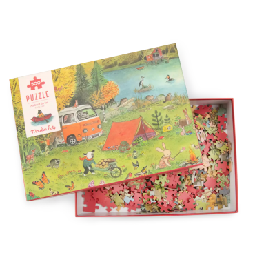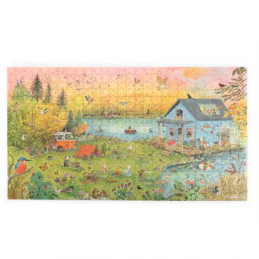 La Grande Famille profite de ses vacances au bord du lac ! Entre marshmallows grillés, balade en barque et moments partagés, on savoure les retrouvailles. Puzzle de 500 pièces avec poster illustré par Camille Jourdy.