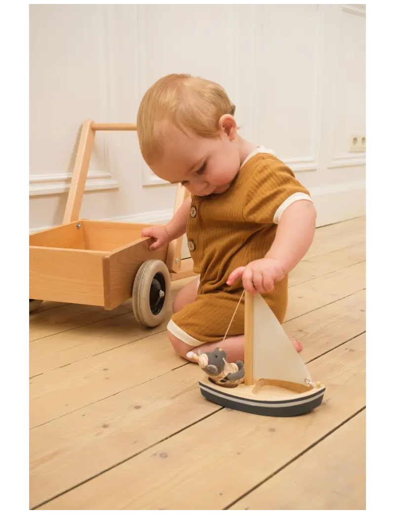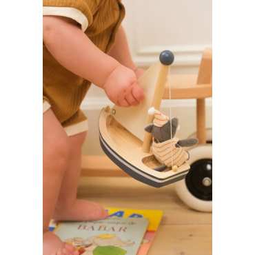 Simple et plein de charme, ce bateau flotte sur l’eau et se laisse guider au gré des jeux et des histoires inventées par les petits marins. Son design intemporel, associé à la tendresse de la peluche, en fait un jouet à la fois décoratif et ludique.