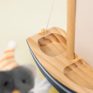 Craquez pour ce ravissant petit bateau en bois signé Egmont Toys. À son bord, un adorable chat en peluche accompagne les enfants dans de douces aventures imaginaires.