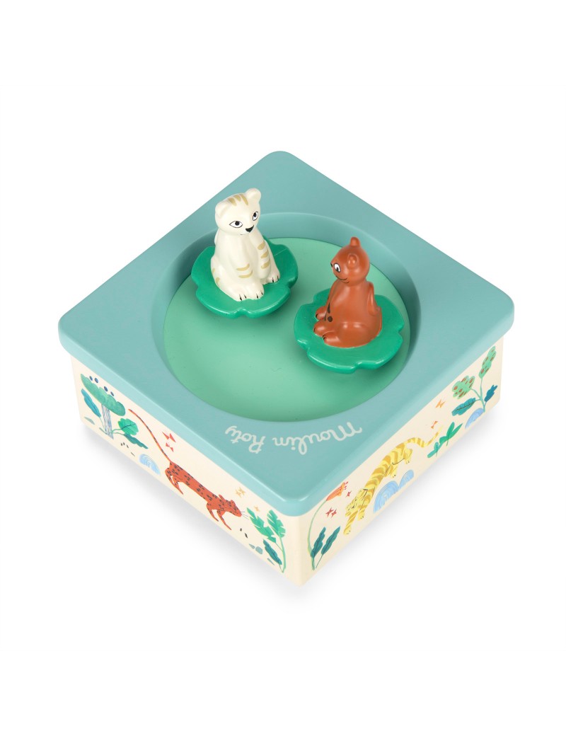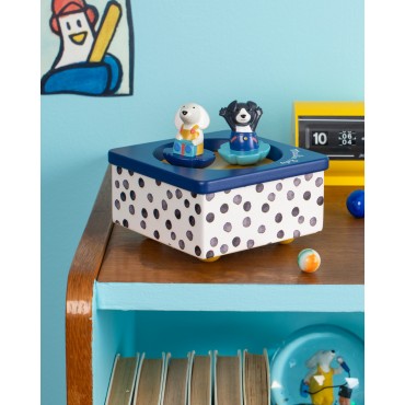 Baboo et Taïgo virevoltent au rythme de la berceuse pour endormir tendrement votre enfant. La boîte à musique a été joliment illustrée à l'aquarelle par Élodie Coudray.