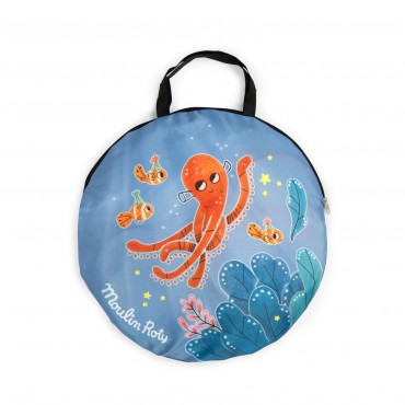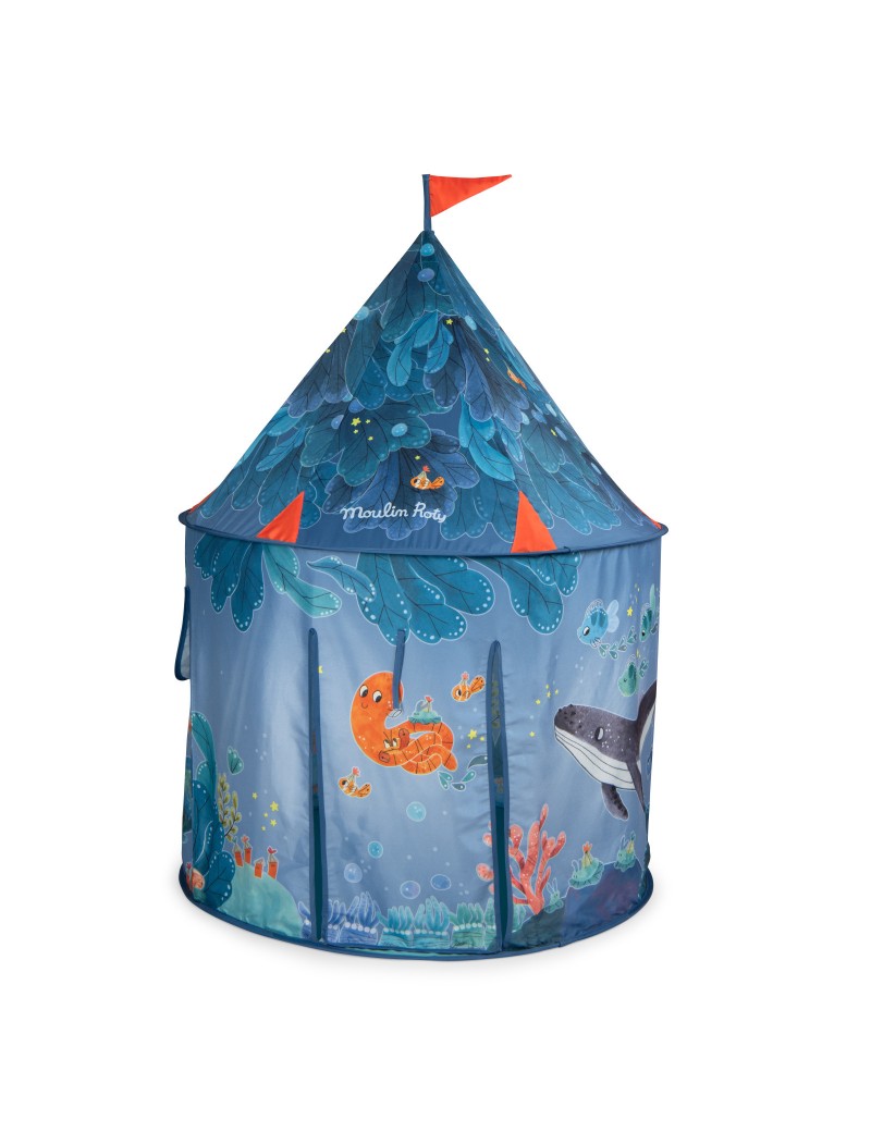 La tente de jeu vous transportera au cœur des aventures de Paulie. Avec sa porte et sa fenêtre, elle sera le refuge préféré des enfants pour jouer à cache cache avec les poissons. Facile à monter, elle est accompagnée d'un sac zip pour la transporter.