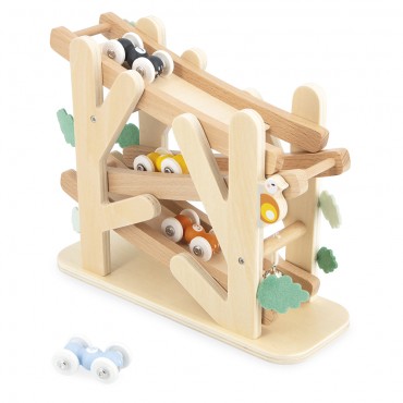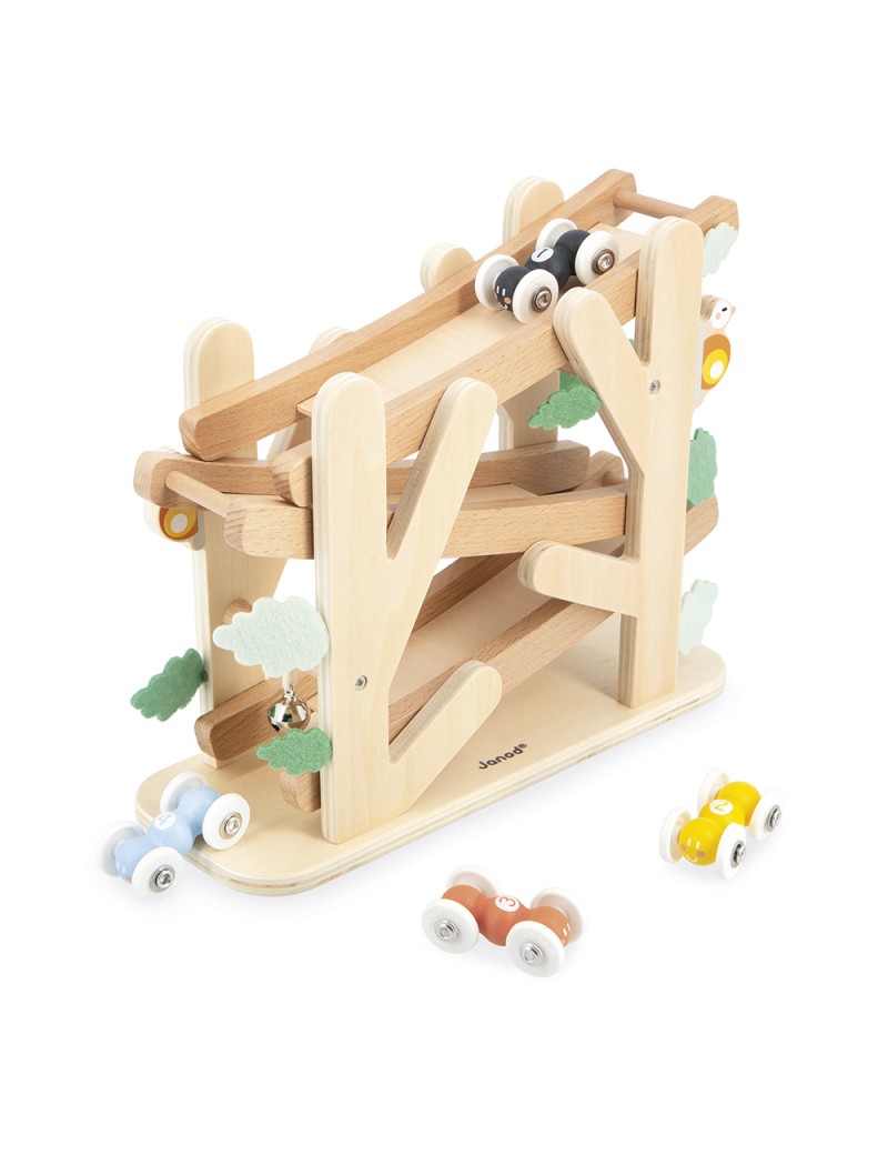 Les fourmis font la course ! Sur ce descendeur en bois, les petits dès 12 mois font dévaler la pente à d’intrépides fourmis. Jouet d’éveil idéal pour développer la motricité fine de bébé et sa compréhension du rapport de cause à effet, notre descendeur fourmis est livré avec 4 roulants de différentes couleurs. Chacune leur tour, les fourmis s’élancent du haut de la colline, déboulent en trombe dans les feuillages, pour finir leur course en fanfare grâce à la clochette située au bout du parcours. Bébé ne se lassera pas de poser sa fourmi préférée tout en haut pour l’observer descendre encore et encore sur 3 niveaux ! Une mécanique simple et efficace, pour un jouet premier âge original et plein de fantaisie. On craque pour le bois naturel du support, les petites bêtes du jardin qui le décorent et les feuillages en feutrine qui apporte une touche sensorielle intéressante. Les fourmis roulantes sont numérotées, comme de vrais bolides, et sont faciles à manipuler. Le tintement de la clochette sur la ligne d’arrivée ajoute une dimension sonore à ce joli descendeur pour bébé. Issu de notre collection Sweet Cocoon, il est composé de bois issu de forêts gérées durablement, certifié FSC™. Alors, qui de la fourmi noire, jaune, bleue ou marron sera la plus rapide ?