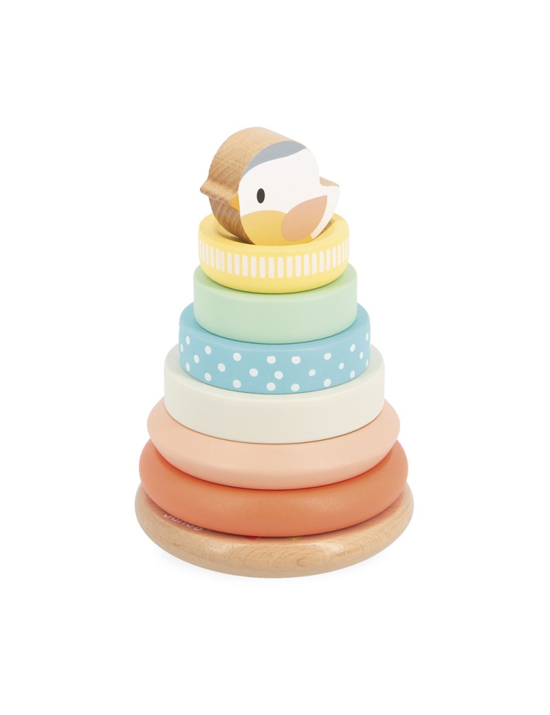 Petit oiseau retrouve son nid sur cet empilable en bois ! Adapté à bébé dès ses 12 mois, le joli volatile niche en haut de la pyramide, perché sur son socle. Composé de 7 pièces à empiler, il permet de développer la motricité fine et la construction visuo-spatiale des petits. Ce jouet d’éveil en bois propose différentes couleurs, tailles et motifs, pour capter l’attention de bébé. Des détails tellement mignons ! Cet empilable à bascule mesure 15 cm de haut une fois assemblé, pour 9,5 cm de diamètre. C’est un jouet premier âge idéal pour stimuler la motricité de bébé et donner une touche bucolique à son univers. Issu de notre collection de jouets d’éveil en bois Pure, cet empilable nid est composé de bois certifié FSC™. Allez petit oiseau, retrouve ton nid !