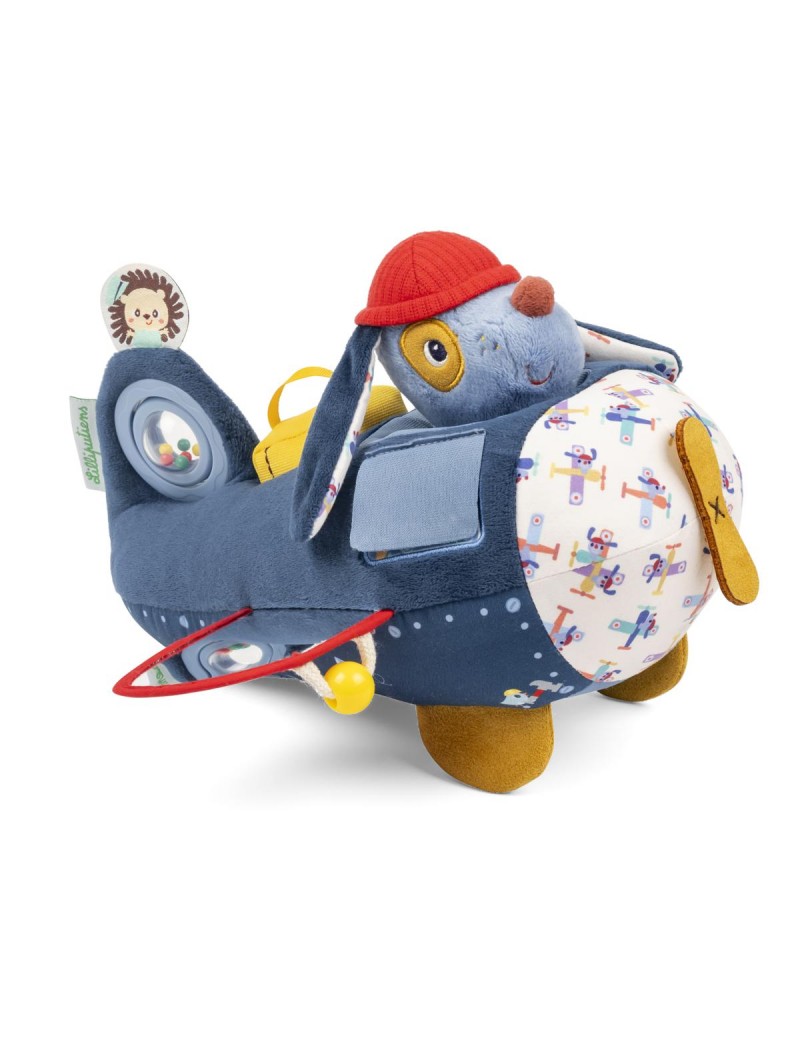 Prêt à décoller vers de grandes découvertes ! Aux commandes, Jules le pilote invite bébé à explorer les différents sons et manipulations qui éveillent ses sens. Hochet, papier crissant, éléments à attraper... chaque détail stimule la curiosité et la motricité fine.