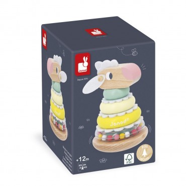Un mouton à empiler et à secouer ! Ce joli mouton multicolore se reconstitue pièce par pièce : un anneau transparent rempli de billes colorées, trois anneaux en bois de tailles différentes, trois pièces en feutrine à intercaler, et enfin sa tête toute douce à positionner en haut ! Une fois assemblé, le mouton se transforme en culbuto grâce à son socle arrondi pour encore plus damusement. Cet empilable est idéal pour développer la motricité fine et la coordination main-il. Jouet en bois FSCTM. Jouet pour les enfants à partir de 12 mois.