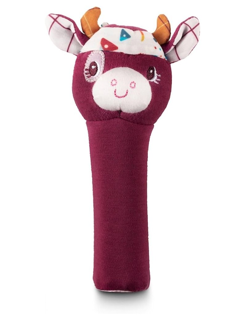 Ca "Pouêt" dans tous les sens ! Place à Rosalie, notre vache au grand cœur ! Avec ce hochet Pouêt, amusez bébé à tout instant, dès l'âge de 3 mois. Pour le faire retentir, c'est simple : il suffit d'une pression et "pouêt" ! Avec notre vache protecteur,e on vous garantit de longs moments joie et de grands éclats de rire. Ce hochet sonore permet aussi de développer l'acuité visuelle de votre enfant, qui le suivra du regard quand vous l'agiterez sous ses yeux. Il stimule également l'ouïe, avec son bruit rigolo. C’est le jouet premier âge simple et pratique, à utiliser pour attiser la curiosité de bébé pendant ses temps de jeu. Quand votre tout-petit grandit, il pourra se saisir du hochet à son tour et le faire retentir à sa guise, ce qui stimule sa capacité de préhension et sa réflexion. Nous avons pensé les proportions de ce hochet pour convenir aux petites mains. Il mesure ainsi 7 x 4 x 16,5 cm. N'oublions pas de mentionner la bonne bouille de notre Rosalie ! Avec son air rieur, sa corne et son bandeau sur la tête ... Oh, et ses jolies broderies ! Composé de jersey biologique, ce jouet d'éveil Lilliputiens est lavable en machine à 30° pour un entretien facile. Allez, c'est parti : pouêt !