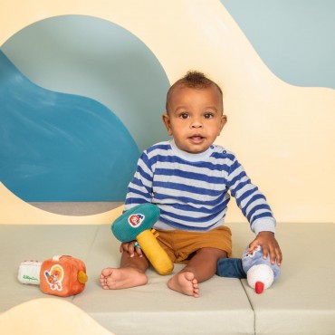Le jouet de bricolage pensé pour bébé ! Avec ce hochet tronçonneuse, votre bout de chou éveille ses sens en douceur dès l’âge de 3 mois. Comme notre ami Jack, le lion téméraire, votre enfant aimera sans doute jouer à faire semblant de bricoler comme un grand ! Pour stimuler l’ouïe de bébé, ce hochet tronçonneuse vibre et dispose d’un hochet à billes sur le verso. Il suffit de tirer sur la ficelle pour activer le mécanisme et ainsi encourager la découverte tactile et sonore. En agitant simplement le hochet en peluche ou en s’amusant à imiter les grands, votre enfant profite d’une expérience sensorielle complète et captivante ! En plus de stimuler les sens des petits, ce hochet orange encourage l’imagination et l’imitation active des petits. Pour les divertir longtemps ! Dans son format 9 x 4,5 x 5 cm, ce hochet en peluche convient parfaitement aux bébés. Si vous êtes à la recherche d’un jouet d’éveil original, le voici ! Il se compose de polyester et est lavable en surface. Offrez-lui dès maintenant son premier jouet d’imitation Lilliputiens !