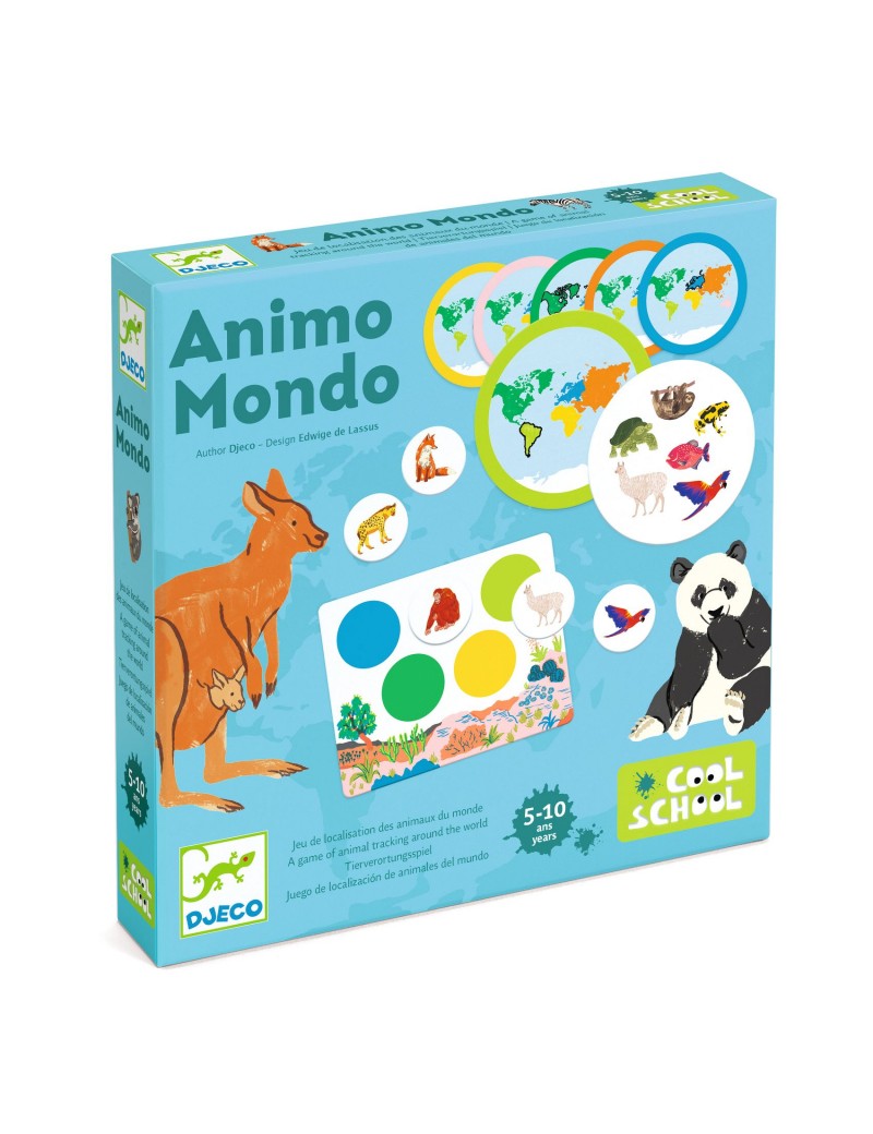 Un jeu de loto, aux illustrations fines et délicates pour localiser les animaux dans le monde. Partis en voyage, panda, kangourou, lama, écureuil et bien d'autres se sont perdus. Aidons-les à rentrer chez eux, les joueurs doivent retrouver où vit chaque animal. Le 1er joueur qui complète sa planche remporte la partie.