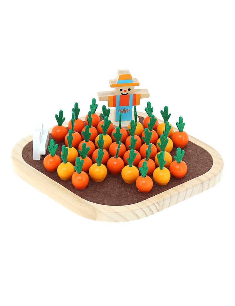 C'est jour de récolte aujourd'hui !!! Serez-vous assez malin pour récolter toutes les carottes du potager pour qu'il n'en reste plus qu'une à la fin ? Et hop ! Un solitaire original en bois avec des pions en forme de petites carottes pour le plus grand plaisir des gourmands.