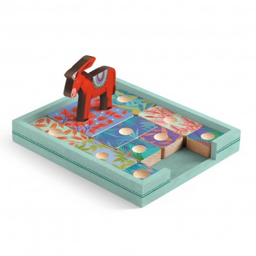 Un objet qualitatif et esthétique. Un jeu traditionnel où, à la fin… l’âne rouge doit être libéré du plateau.