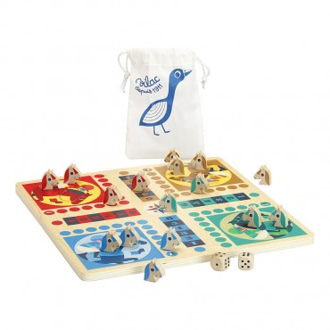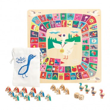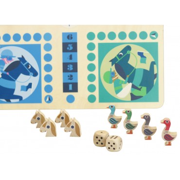 Boite de jeux de l'oie et de petits chevaux illustrés par Ingela P.Arrhenius - dans son univers vintage et retro. À partir de 4 ans