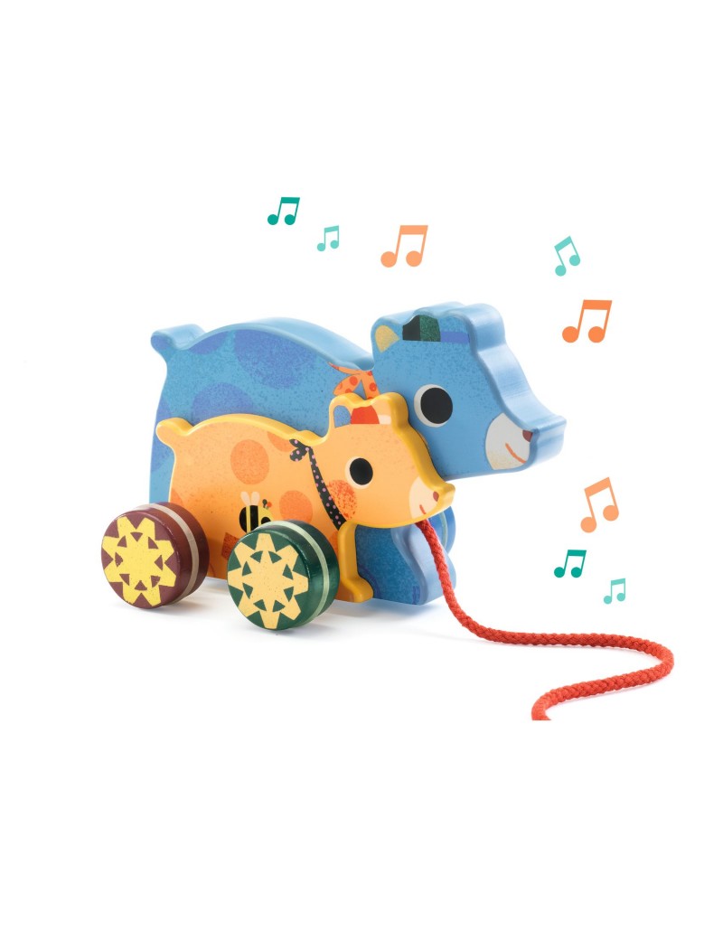 Des oursons à tirer qui jouent une douce mélodie quand ils roulent.