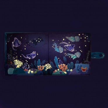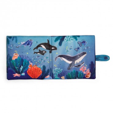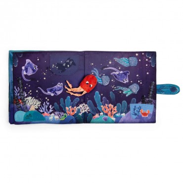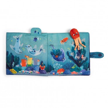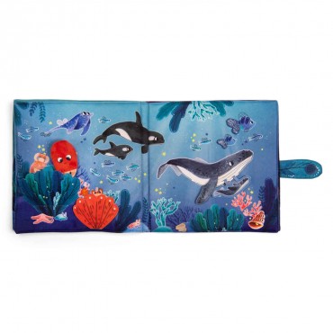 Grand livre en tissu portant sur le thème emblématique des fonds marins.