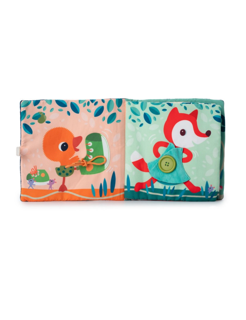 Apprendre à s'habiller … Avec un livre ? C'est possible, et c'est même très amusant pour les enfants dès l'âge de 18 mois avec ce livre d'activités en tissu ! Au fil des pages, des animaux amusants se déshabillent à l'aide de différentes fermetures pour encourager l'autonomie de vos petits : fermeture éclair, lacet, bouton, boucle et autre bouton pression sont accessibles pour s'entrainer à s'habiller. Tout le long du récit, les petites mains s'exercent au service de la motricité des petits. Ce livre en tissu est aussi un moyen très simple d'occuper et de divertir votre bambin pour un moment de calme. Sur la couverture, c'est Jules le chien qui ouvre la danse avec son joli ciré jaune ! Mais d’ailleurs, pourquoi toute cette joyeuse bande retire t'elle ses vêtements, et où vont-ils ? Ils courent se baigner, bien-sûr ! Une fois dans l'étang, nos amis n'ont que faire de leurs vêtements. Attention aux petites souris : ces petites coquines ont un faible pour les vêtements abandonnés et adorent s'en emparer ! En plus d'être éducatif, ce livre Lilliputiens conte une histoire amusante qui va captiver les tout-petits. Le format carré 20x20 cm et la variété des fermetures proposées font de ce livre d'activités un vrai jouet au service de la dextérité et de l'imagination. Vous pouvez laver ce livre en tissu en machine à 30°.