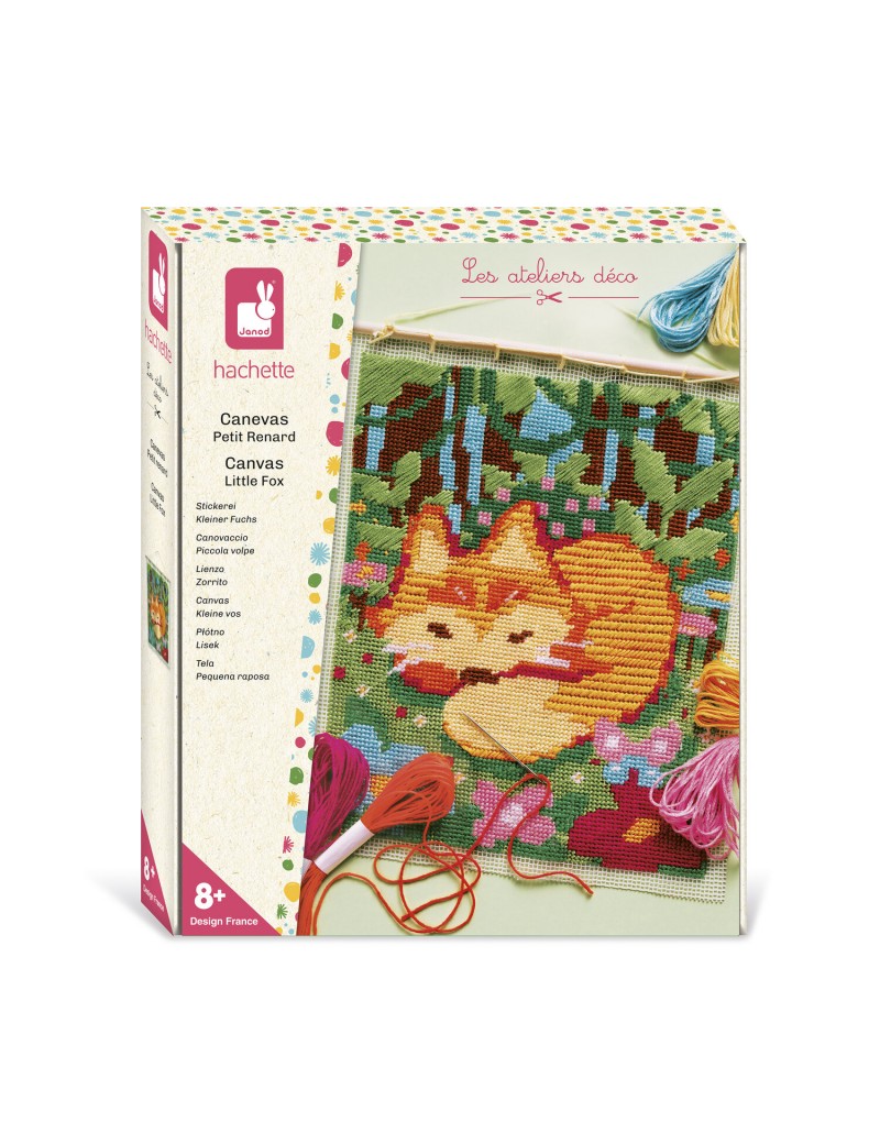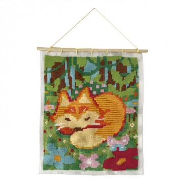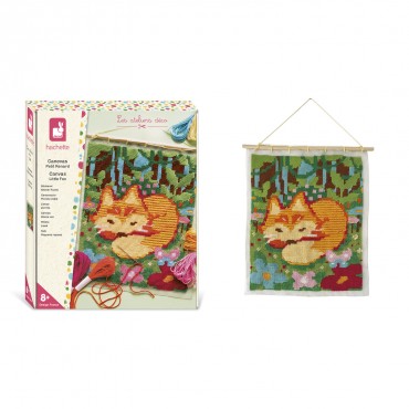 Chut il ne faut pas réveiller le petit renard ! Ce kit créatif permet de réaliser un canevas à suspendre. Il contient 1 toile imprimée à broder entièrement (21x15 cm), 10 fils de couleurs différentes, 1 aiguille, 1 baguette en bois pour suspendre le canevas et 1 livret de 12 pages avec les explications en pas à pas. Cette activité est idéale pour débuter avec le canevas : le livret détaille la réalisation de petits points classiques mais aussi de points plus larges pour réaliser son canevas plus rapidement. Elle permet de développer sa patience et sa dextérité. Elle dure environ 2 jours au total et est idéale pour les enfants à partir de 8 ans.