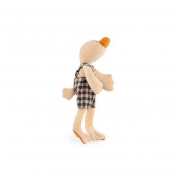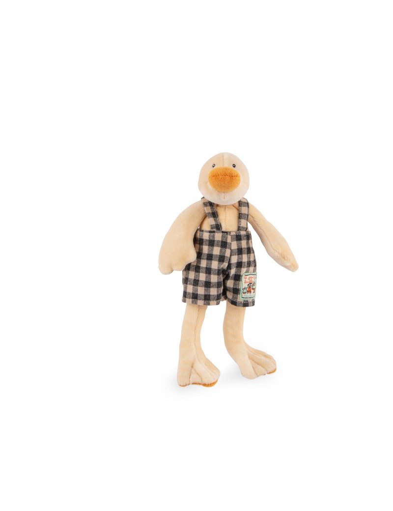 Poupée miniature en velours au doux visage brodé, facile à saisir par les petites mains. Salopette vichy, petits yeux aimants et bec jaune, Amédée le canard est l'ami idéal pour partager de tendres moments de complicité avec bébé.
