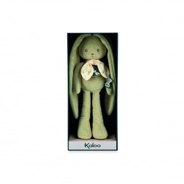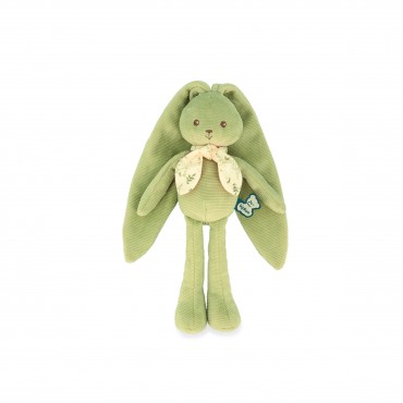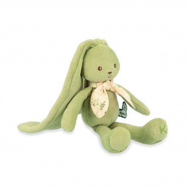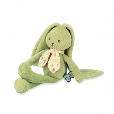Ce joyeux lapin vert de 25 cm a de si longues oreilles, on peut l'accrocher partout pour le garder et ne jamais le perdre. Il peut tout faire avec : le poirier, de la balançoire, s'accroche au fil à linge, et va même jusqu'à se balancer à la lune. Avec ses si longues oreilles, il enveloppe les bébés de tendres câlins et partage des moments de douceur avec eux. Présenté dans un joli coffret cadeau personnalisable avec un message dans l'espace disponible sous le couvercle. Lavage en machine à 30°.