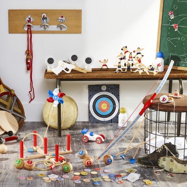 Les jouets en bois perdurent, jour après jour, année après année. Naturel et durable, le bois est un matériau de caractère et agréable au toucher.