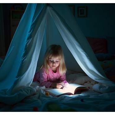 Facile à prendre en main, douce au toucher et parfaitement adaptée aux petites mains, elle aide les enfants à se sentir en sécurité et autonomes dans le noir. Avec deux tons de lumière et une luminosité réglable, elle est idéale pour lire, regarder sous le lit ou explorer une cachette secrète. Rechargeable par USB-C, légère et équipée d'une dragonne pratique, ce fidèle petit chiot peut aller partout : à la maison, en vacances ou chez des amis. Un compagnon lumineux qui apaise les peurs, illumine les jeux et stimule l'imagination.