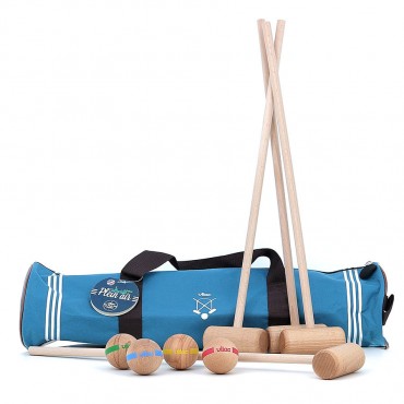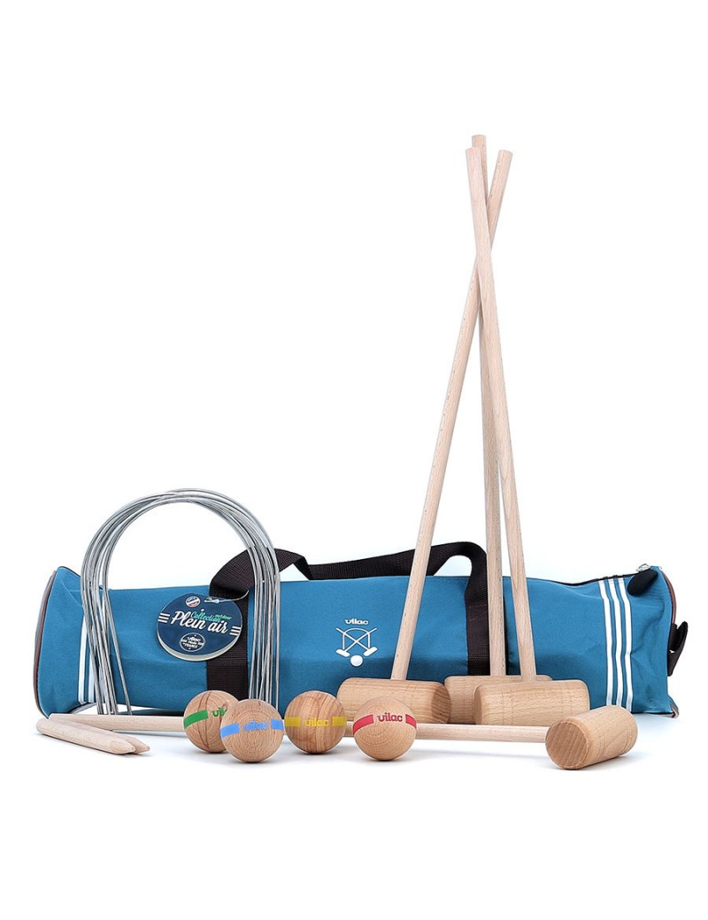 Traditionnel jeu de croquet en bois dans un nouveau sac qui facilite le transport et permet de jouer n'importe où. Fabrication française.