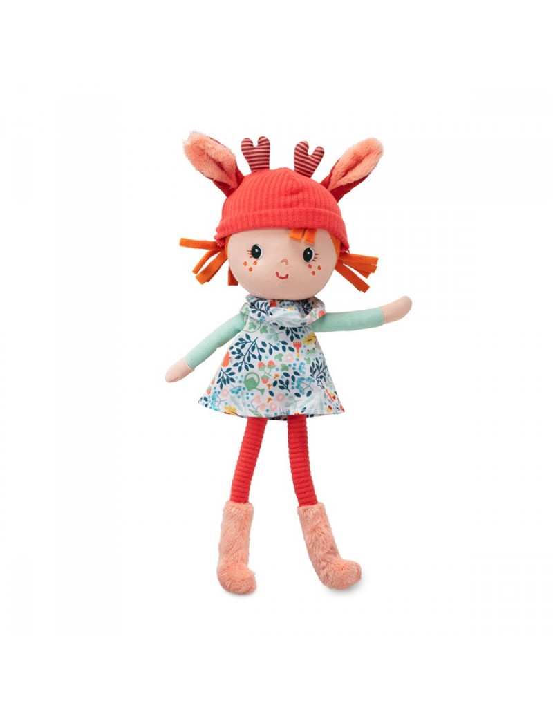 Stella n’est plus le petit faon que l’on connait, elle s’est transformée en une adorable petite fille rousse avec sa robe fleurie et son bonnet aux oreilles et bois de faon. Cette poupée câline deviendra vite l’inséparable amie de son futur petit propriétaire.