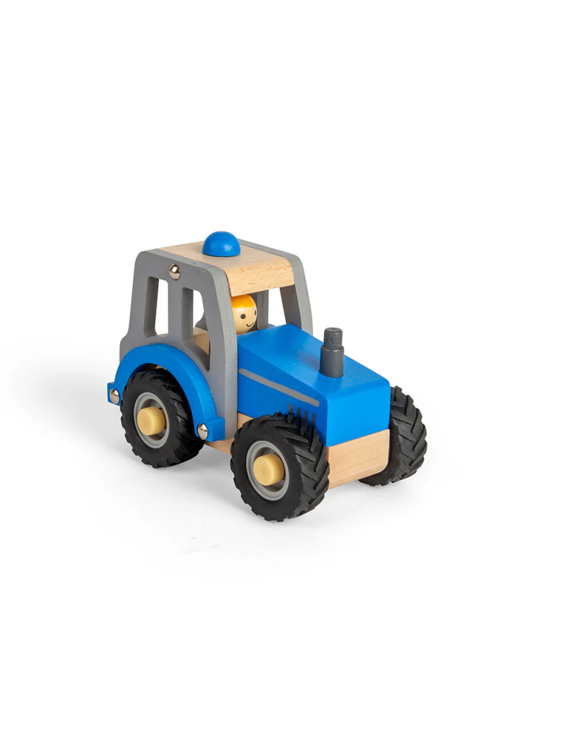 Les petits fans de tracteurs peuvent jouer jusqu'à ce que les vaches rentrent à la maison avec ce tracteur jouet réaliste en miniature ! Le mini tracteur bleu est doté de pneus en caoutchouc épais avec des sculptures profondes, tout comme un vrai tracteur ! Il est également livré avec un fermier en bois qui s'insère à l'intérieur du tracteur.