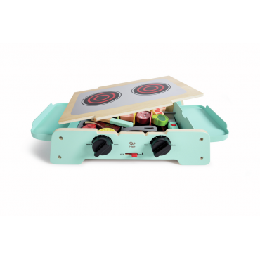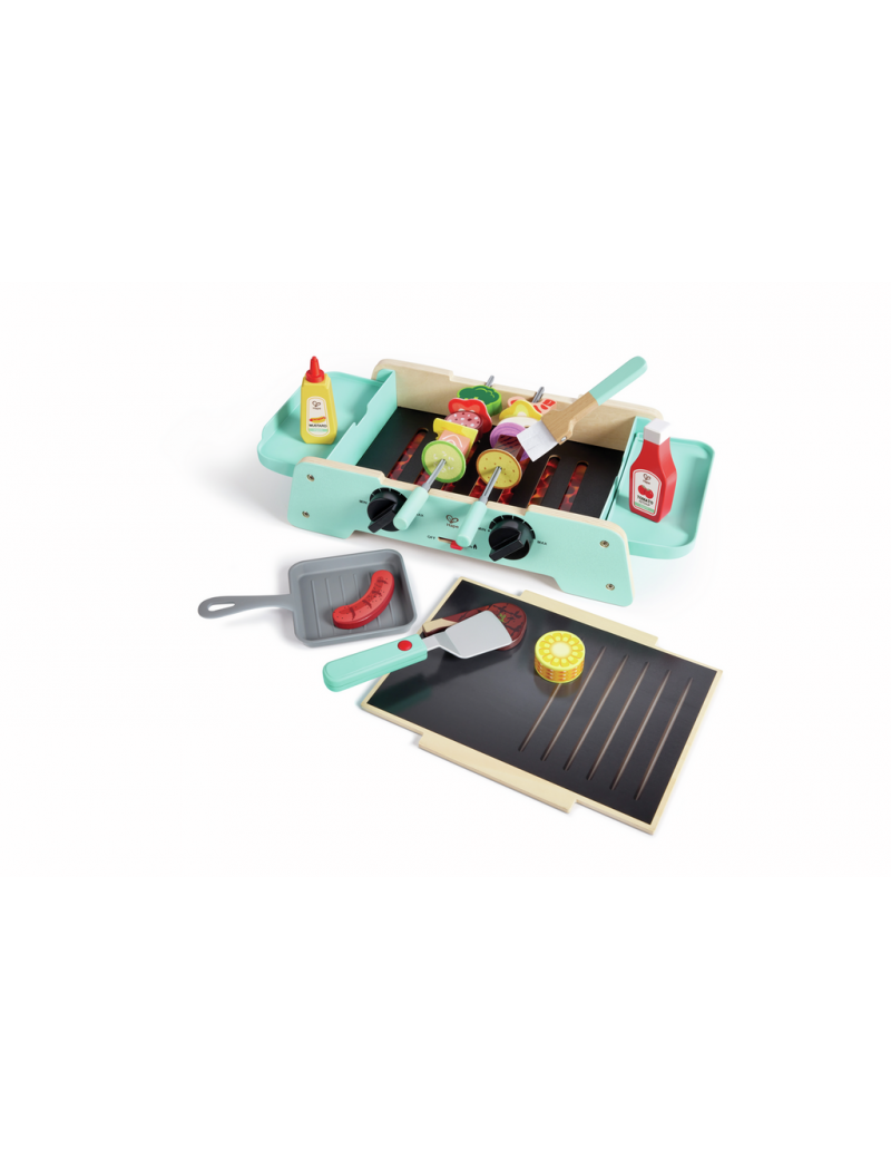 Découvre le plaisir de préparer un barbecue ou une plancha grâce à ce jeu d'imitation en bois avec sons grésillants, charbons lumineux et divers accessoires de cuisson interactifs.