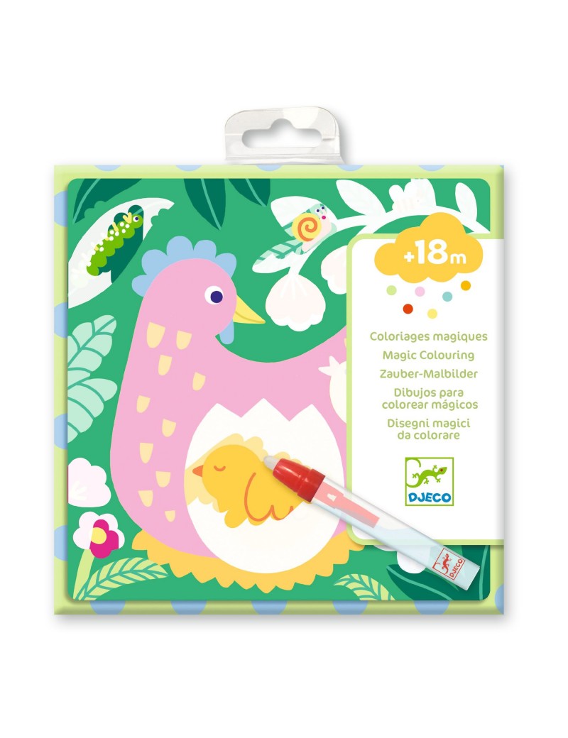 Une pochette de coloriage à l'eau adaptée pour les enfants, dès 18 mois. L'enfant colorie à l'aide du crayon à eau les parties blanches pour découvrir ce qui se cache derrière. C'est magique : des bébés animaux apparaissent ! Les planches sèchent et l'enfant recommence !