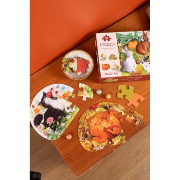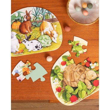 A la découverte des animaux du jardin ! Coffret 1er âge contenant 4 mini-puzzles de 12 pièces, mettant en scène des animaux domestiques et sauvages que l'enfant pourra découvrir dans son jardin. Chaque puzzle est accompagné d'un poster modèle.