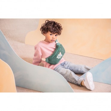 Ce sac banane tout doux, en velours côtelé, complètera les tenues de vos bouts de chou. Joe, branché avec ses ailes dorées, protège et veille aux trésors dans ce sac.