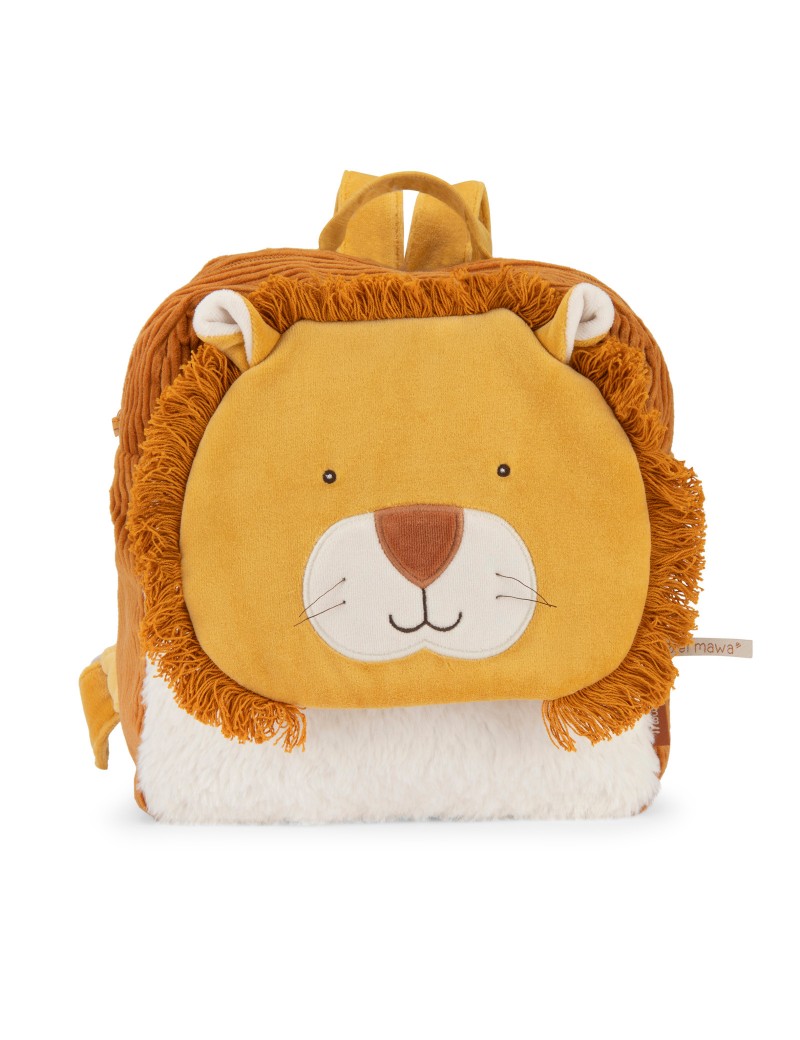 En velours côtelé et en fourrure, Mamba le lion se transforme en un sac à dos pratique grâce à sa poche avant plaquée, sa fermeture à zip et ses bretelles réglables. Muni d'un crochet porte-manteau, il sera idéal pour les premières sorties. Brodable.