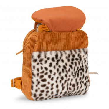 En velours côtelé et en fourrure, Taïgo le léopard se transforme en un sac à dos pratique grâce à sa poche avant plaquée, sa fermeture à zip et ses bretelles réglables. Muni d'un crochet porte-manteau, il sera idéal pour les premières sorties. Brodable.