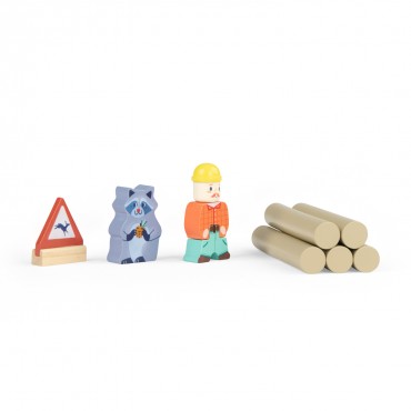 Tut Tut ! Laissez passer le beau camion forestier en bois ! Grâce à sa grue aimantée et aux autres accessoires inclus, les bûcherons pourront charger et décharger les bûches. Prêt pour jouer ?