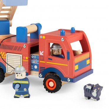 Lancez la sirène, les pompiers partent en intervention avec ce magnifique camion en bois ! Grâce à la grande échelle, la lance à eau et aux petits accessoires, les petits s'inventeront des histoires inoubliables pour des heures de jeu en perspective.