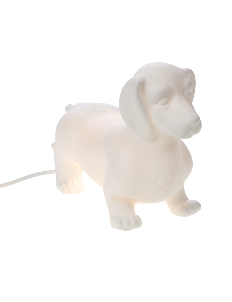 Pour une lumière douce et rassurante, cette petite lampe chien teckel en porcelaine sera parfaite. Une jolie décoration pour la chambre des tout petits à offrir pour toutes les occasions, naissance, baptême, anniversaire...